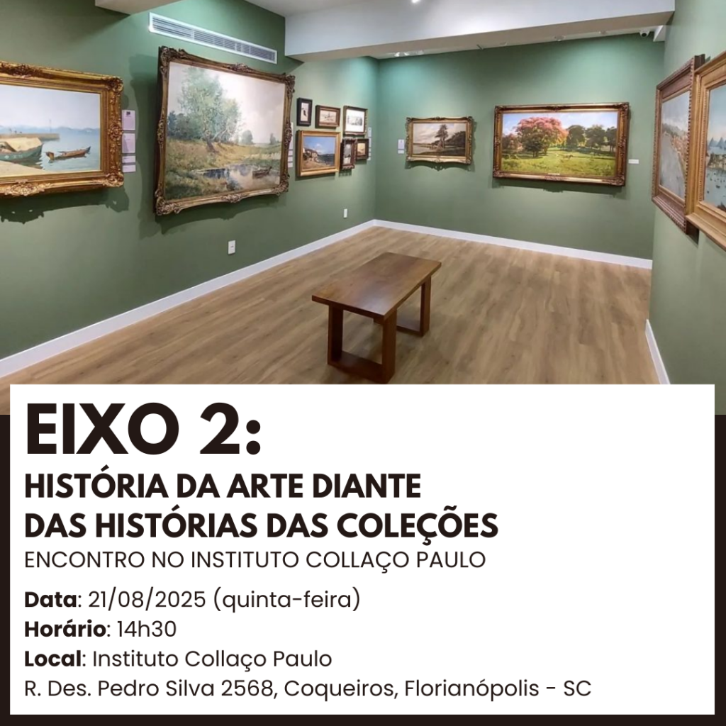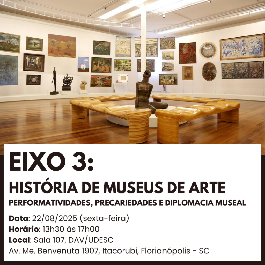 O quê: curso “História da Arte: Coleções e Museus”, ministrado por Emerson Dionisio Gomes de Oliveira. Eixo 3: “História de Museus de Arte: Performatividades, Precariedades e Diplomacia Museal”