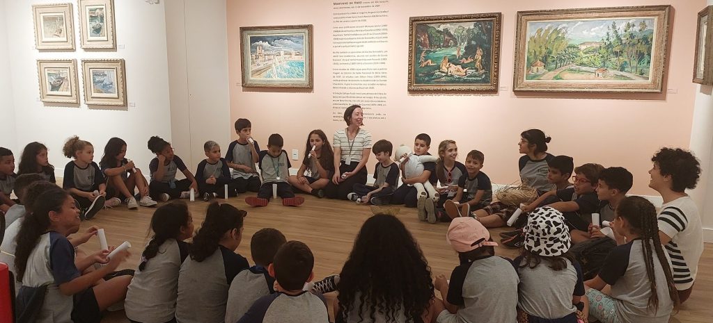 Joana Amarante, coordenadora do Núcleo Educativo do Instituto Collaço Paulo – Centro de Arte e Educação, participa, entre 6 e 8 de julho, do 1º Encontro Nacional de Educação Museal (Emuse), na cidade de Cachoeira (BA), onde faz a abordagem “Ação Educativa de Obras do Século 19 com Bebês”, com base em uma experiência ocorrida na mostra “Mais Humano: Arte do Brasil de 1850 – 1930”. Oito crianças, entre um e três anos, contam com a sua mediação, sob o acompanhamento da professora Greicy Mery Oliveira, do Núcleo de Educação Infantil Municipal (Neim) Celso Pamplona, do bairro Jardim Atlântico, em Florianópolis (SC).