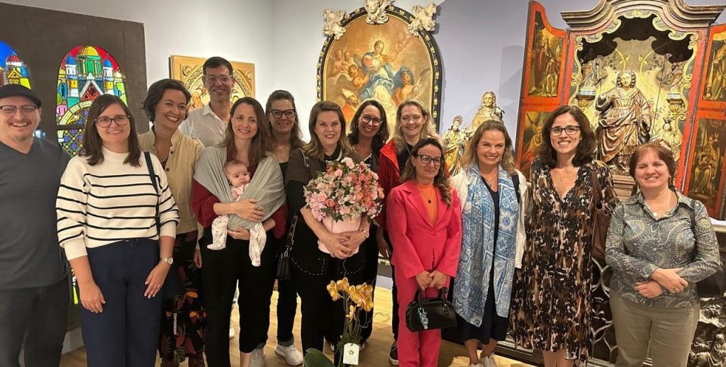Um café na tarde para selar relacionamentos afetivos e institucionais, uma homenagem, um encontro com cerca de 30 pessoas ocorreu no dia 25 de abril, no Instituto Collaço Paulo – Centro de Arte e Educação. Descontraída, a reunião mereceu um passeio pela exposição “Etérea”, conduzido pela coordenadora do Núcleo Educativo Joana Amarante e pela curadora Francine Goudel com a pequena Sara no colo, ganhou fala de Marcelo Collaço Paulo, diretor-presidente da instituição que aproveitou o momento para mencionar e agradecer o trabalho realizado por Sandra Makowiecky na gestão do Museu da Escola Catarinense (Mesc). Destacou sua dedicação e importância na área, com vasta produção em livros, artigos, uma amante da arte, integrante do conselho fiscal do instituto no qual presta permanente consultoria. Luana Wedekin também falou na condição de discípula, enalteceu as características da professora, um discurso mais emotivo.
