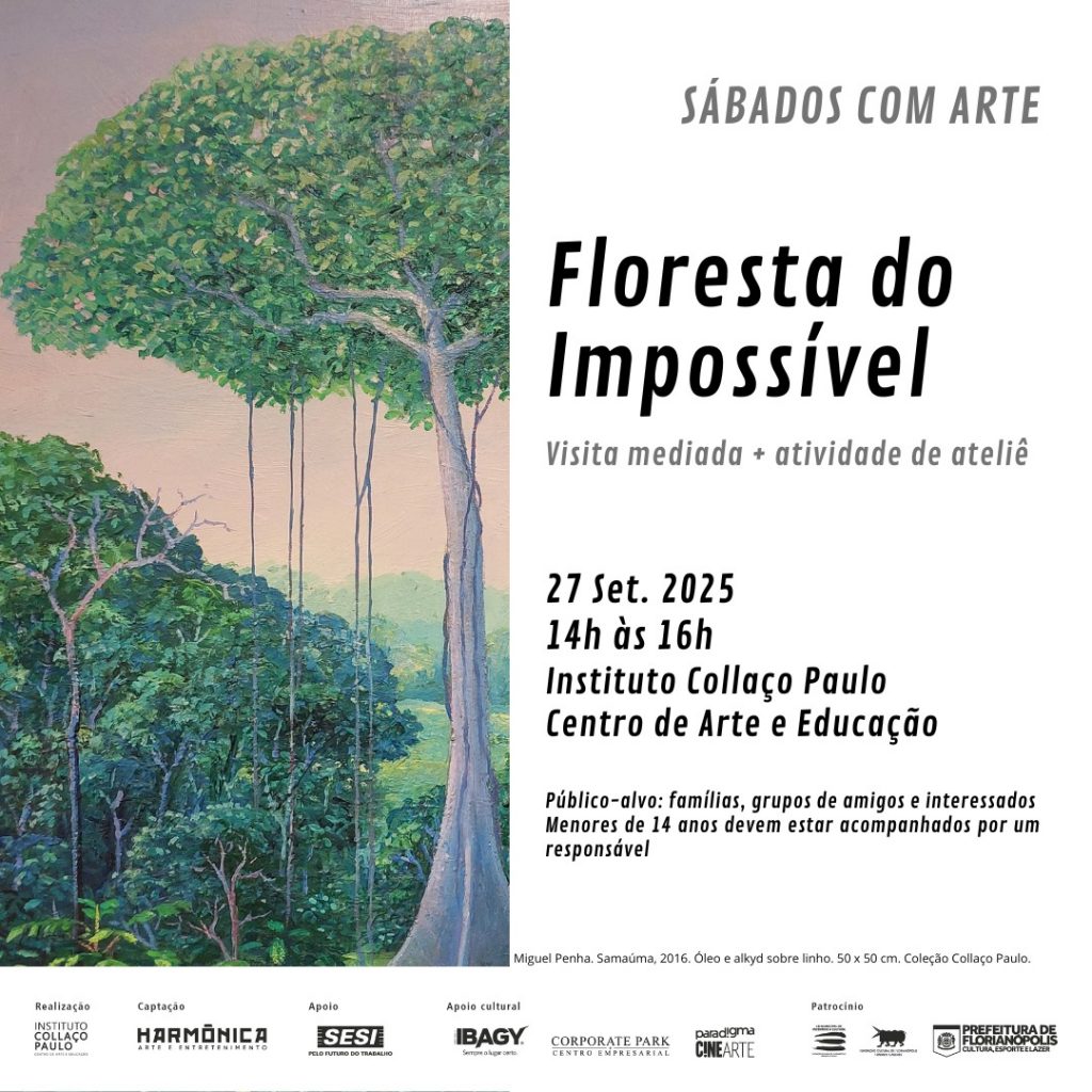 Com o recorte da imagem da obra “Samaúma” (2016), de Miguel Penha, artista com ancestralidade indígena, autor de uma gramática única na pintura brasileira, o Núcleo Educativo do Instituto Collaço Paulo – Centro de Arte e Educação, em Florianópolis (SC), propõe um Sábados com Arte no dia 27 de setembro, entre 14 e 16 horas, uma prática artística com acesso gratuito, mediante inscrição prévia. A proposta “Floresta do Impossível”, que consiste em visita mediada e atividade de ateliê, integra-se ao tema Museus e Mudanças Climáticas, da 19ª Primavera dos Museus, iniciativa do Instituto Brasileiro de Museus (Ibram) e do Ministério da Cultura (MinC).